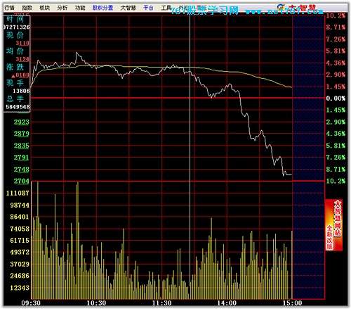 跌破平台--指股价线在离均价线较近的地方进行长时间的横向整理,后向下跌破平台的走势。 特征: 1、跌破前,一定要出现一段横盘走势,形成一个明显的平台。 注意: 1、要把握跌破平台的卖出时机。最好在第一个跌破平台卖出。第二个次之,因为跌副较大。 |